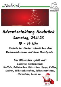 Kinder schmücken den Weihnachtsbaum auf dem Marktplatz. Mit Bläserchor, Glühwein, Kinderpunsch, Waffeln, Reibekuchen, Würstchen, Suppe, Kaffee, Kuchen, Selbstgebasteltes, Selbstgestricktes, Marmelade, Kekse und vielem mehr.