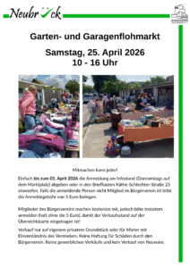 Der nächste Garten- und Garagenflohmarkt ist für den 25.04.2026 geplant!